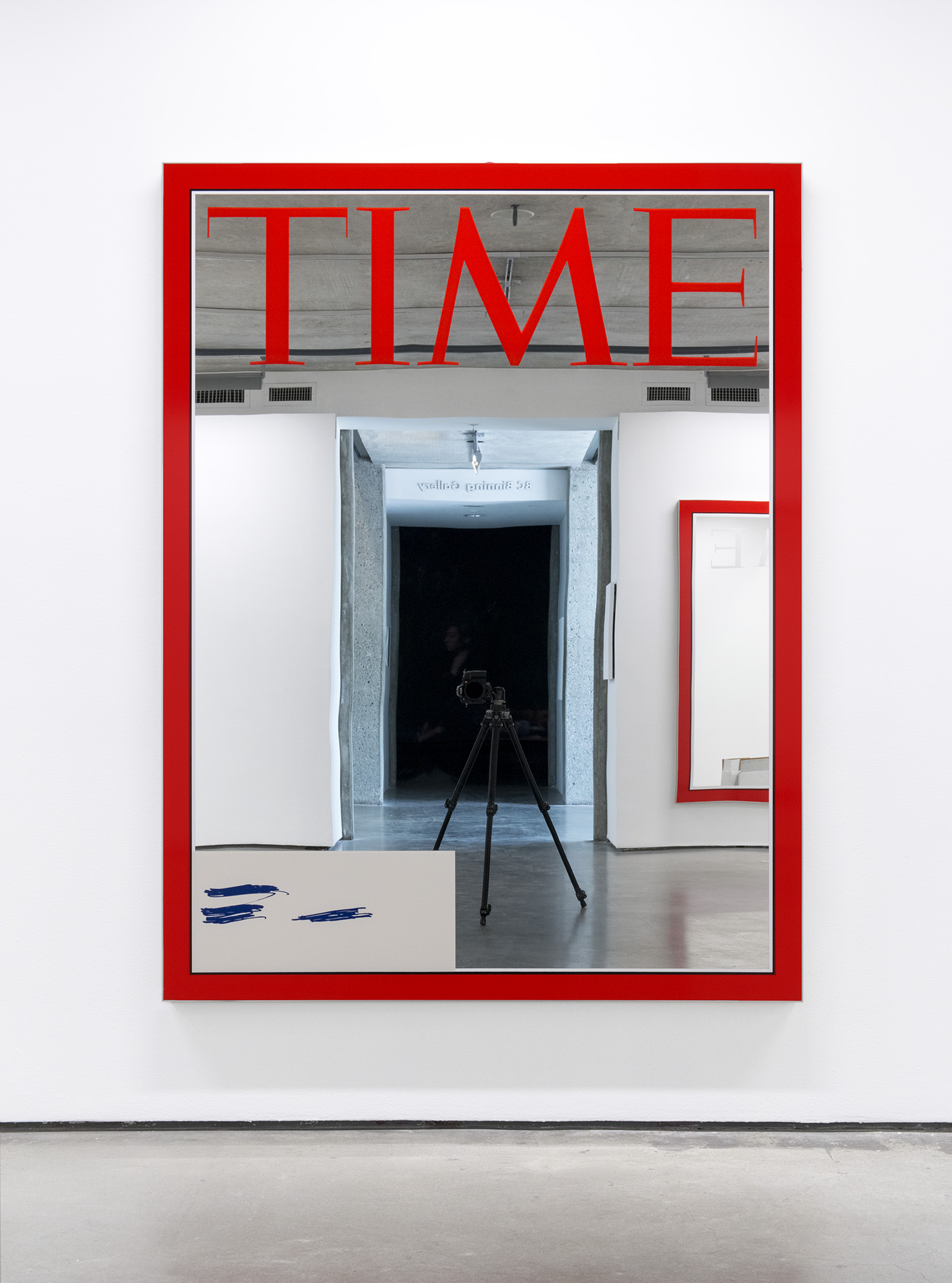 Enamel on low-iron mirror, poplar and anodized aluminum